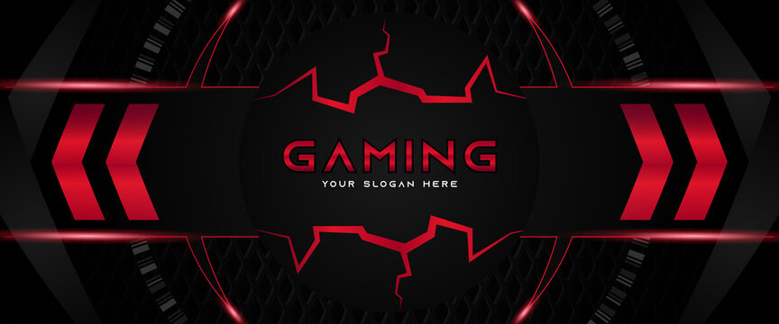 Futuristic red and black abstract gaming banner design template with metal technology concept. Vector illustration for business corporate promotion, game header social media, live streaming background