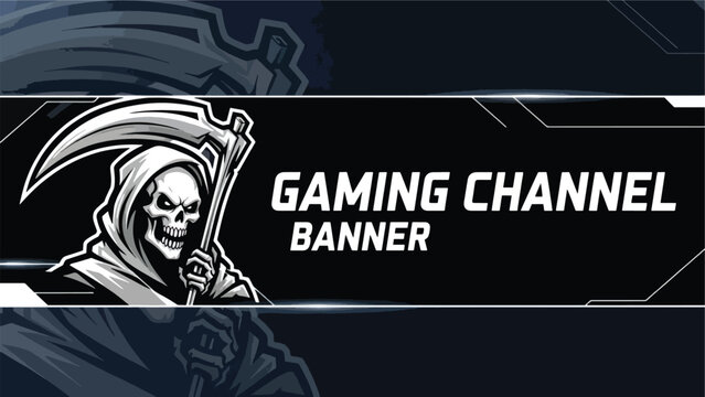 Professional gaming channel banner design featuring an intimidating grim reaper skull