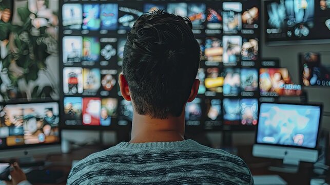 Online streaming culture, person watching stream on multiple devices, focus on entertainment and technology