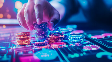 Exciting poker night with colorful casino chips highlighted