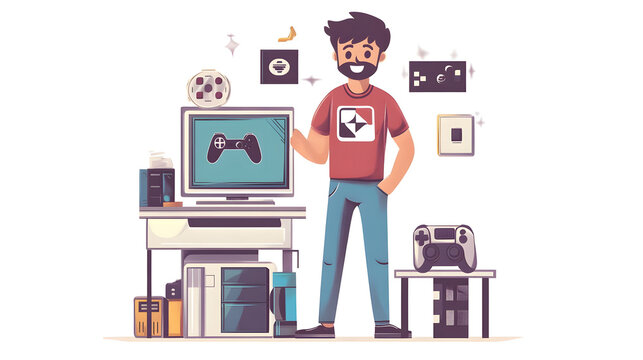 Professional Video Game Designer Illustration Concept for Gaming Industry Marketing