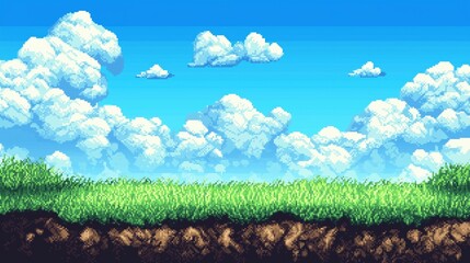 Landscape 8bit pixel art. Summer natural landscape mountain scenery arcade video game background