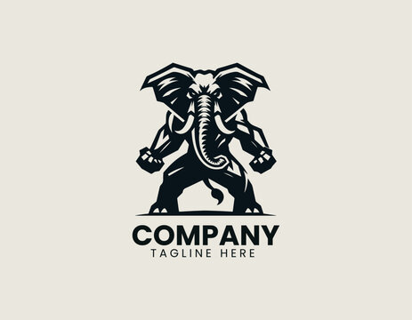 Wild elephant mascot represents energetic gaming spirit forming bold black vector logo