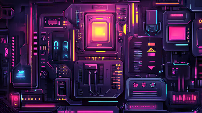 Neon gaming geometric abstract glowing cyberpunk style banner for advertising and promotion background wallpaper ai generated image. Nightspire. Illustration