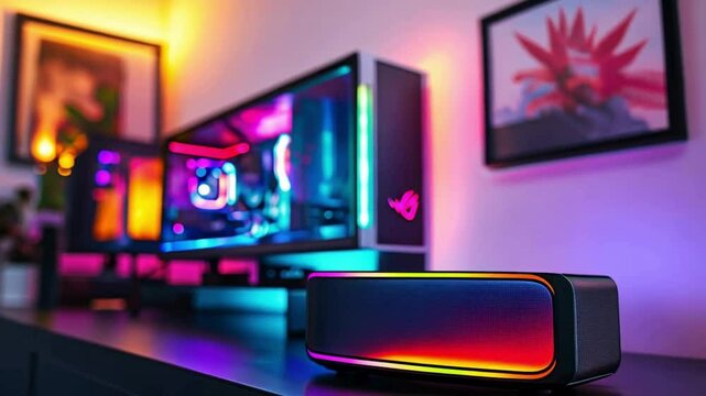 Gaming room with hightech technology computer. Generative AI Technology