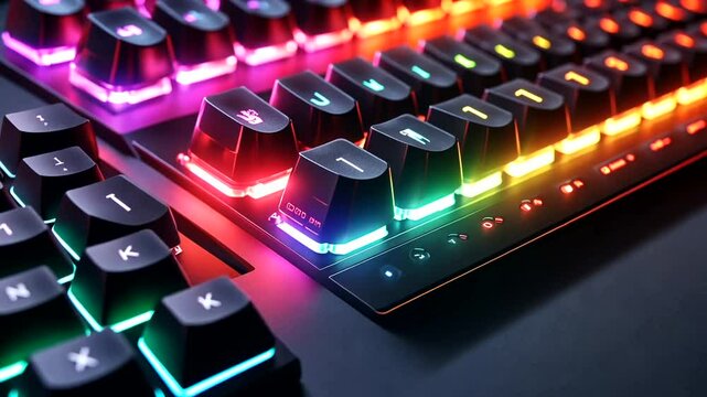 Colorful gaming keyboard with vibrant backlighting in focus