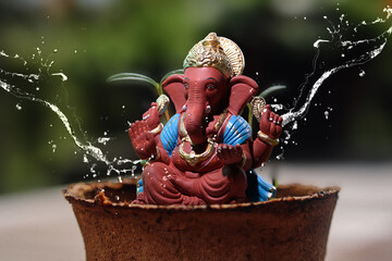 Ganesh visarjan background with ganesh statue in water.