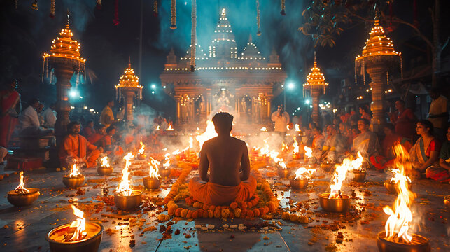 March 2019, India, Religious Hindu ceremony at night, tc01