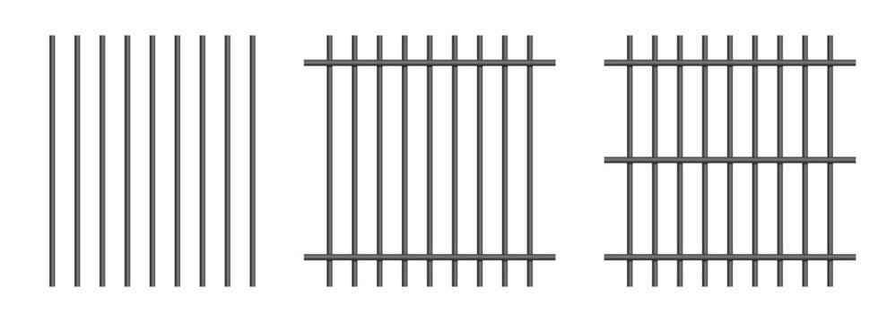 Set of prison bars. Realistic vertical and horizontal metal jail bars, iron grid mesh of crossed rods, gaol lattice from pipes for arrest and punishment of criminals in jailhouse. Vector illustration