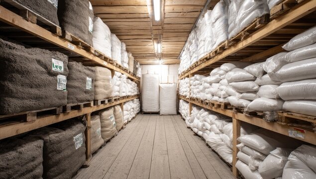 Spacious facility of garden center with assorted potted plants and blooming flowers lit by sunlight