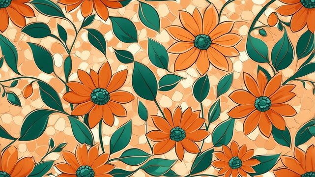 base xl pretty green theme flowers on light orange background, egg mosaic style