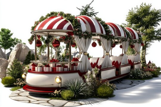 Mobile bakery trolley flat design, side view, garden party theme, animation, vivid
