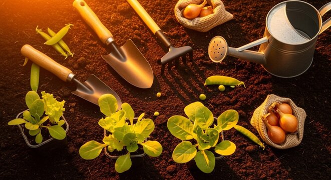 Gardening Tools and Seedlings on Soil - A Gardeners Delight.