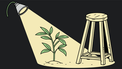Indoor plant grow light setup with stool illustration for gardening and home decor ideas and design inspiration