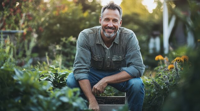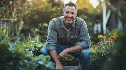 A father and two children actively engage in gardening, planting vegetables in rich soil, showcasing family bonding and the joy of outdoor activities.