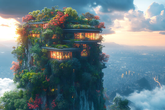 A modern skyscraper with vertical gardens and eco-friendly energy solutions