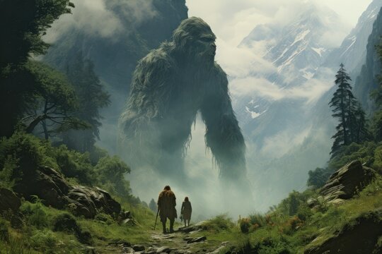 Gargantuan dragon hoarding a pile of treasure. The background is a towering mountain range dotted with towering peaks and treacherous passes. Illustration fantasy by generative IA
