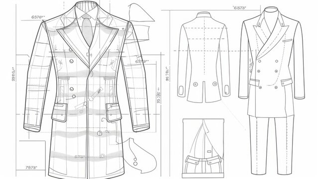Detailed Sewing Pattern Drawings for Fashion Design and Crafting