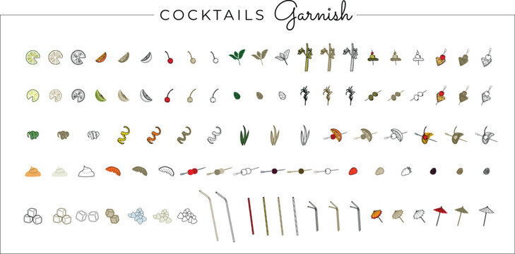 Set of fruit flat illustration. Cocktail garnish. Vector illustration of citrus