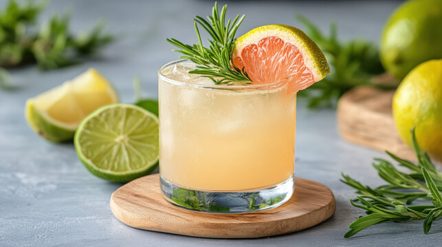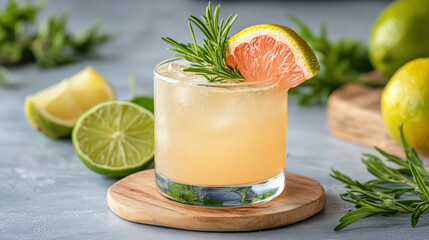 Refreshing mocktail with herbs and citrus fruits garnished with lime