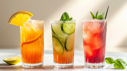 artisanal mocktail selection with fresh garnishes against a warm, illuminated backdrop