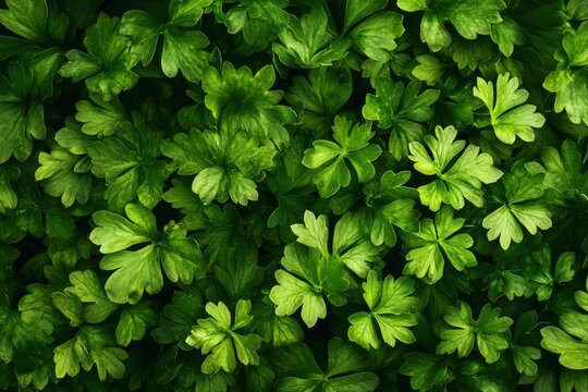 Close up of fresh parsley leaves, culinary and garnishing uses.