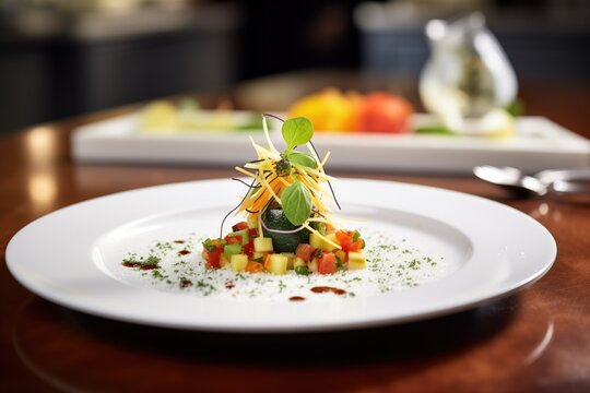 Chef s close up  crafting exquisite food garnishing for fine dining and culinary artistry