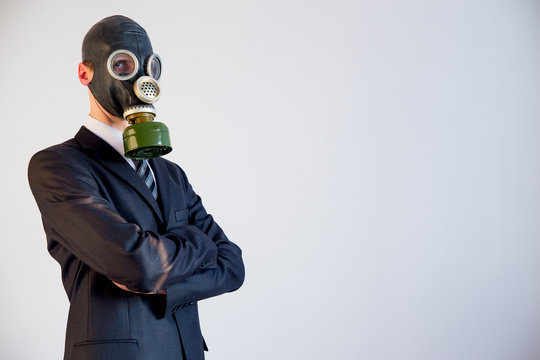 portrait woman wearing gas mask rebellious girl protesting against pollution with respirator for poisonous air global warming climate change emergency