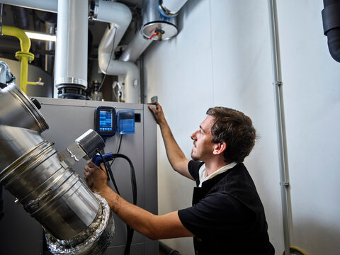 Gas detection device actively monitoring hazardous gases to ensure workplace safety copy space, safety monitor, futuristic, Composite, refinery backdrop
