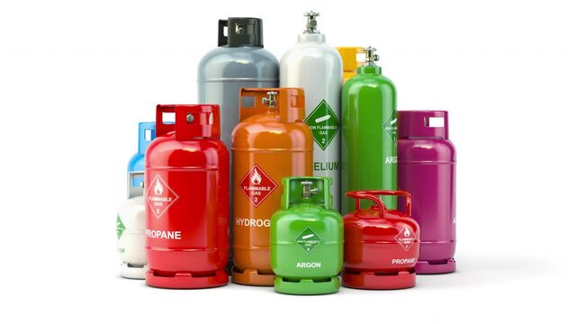 Different industrial liquefied gas containers, tanks and bottles with different gases