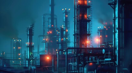 Gasoil factory side view in a scifi world, hyperrealistic Lidar vision and AI security holographic effects