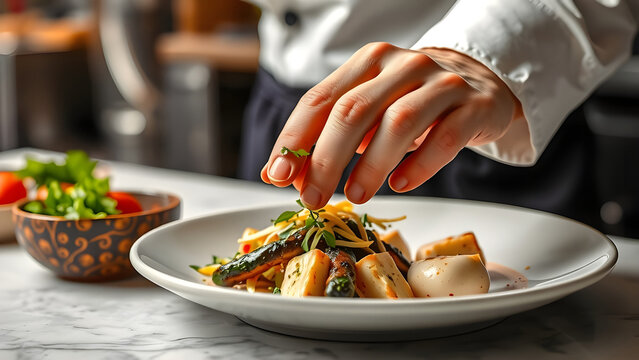 Exquisite Gourmet Dish presented. Restaurant dish. Lunch in a restaurant. For restaurant advertising. Generative ai.