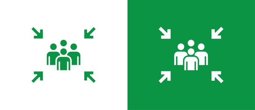 Green Assembly point sign. gathering point signboard, Assembly point icon, emergency evacuation icon symbol, assembly sign vector illustration in two tone background.