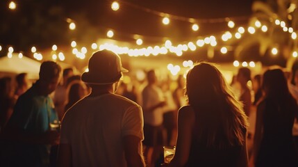 Power outages during a community festival. Featuring neighbors gathering under string lights