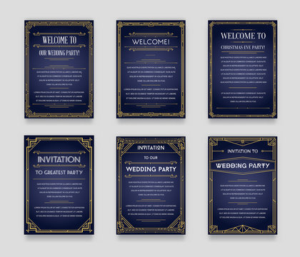 Art deco wedding invitation card vector. Luxury classic antique cards design for VIP invite, Gatsby invitation gold, Fancy party event, Save the date card and Thank you card. Vector illustration.