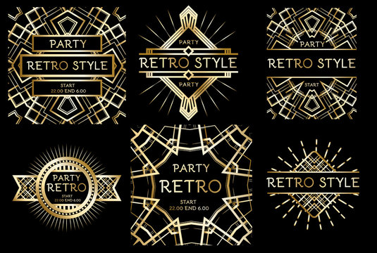 Vector retro template for gatsby style vintage party, greeting cards, invitations, retro parties and advertising. Art deco or vector of the nouveau era of the 1920s gangster era.