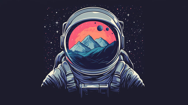 An astronaut gazes at a majestic earth. astronaut floating in space with stars reflecting on helmet. Majestic - Mountain. Illustration