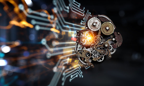 Gears and cogs macro . Mixed media