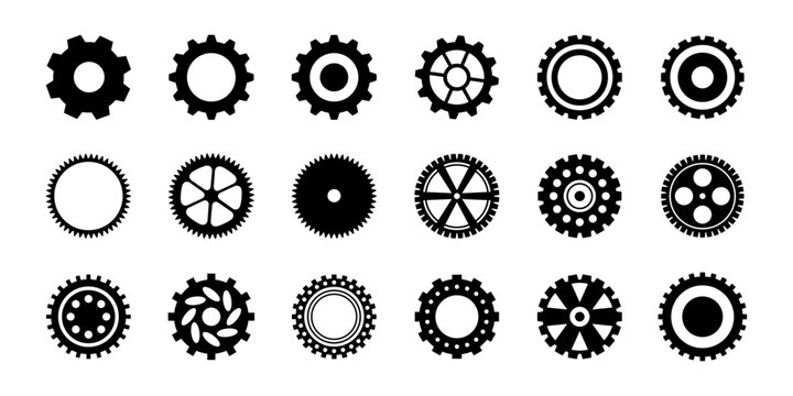 Cogwheel machine gear icon, set of gear wheels. Vector illustration, isolated.