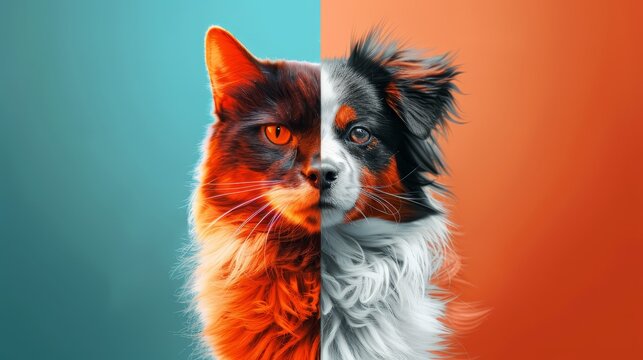 an animal telepathy themed graphic image, on a blue and white background. vector graphics base.