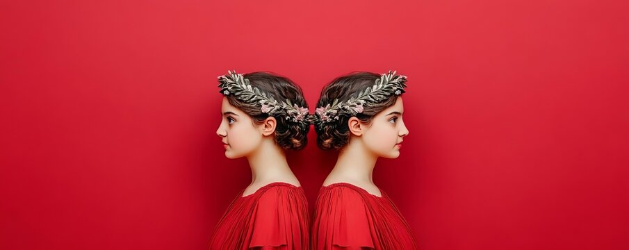 Gemini zodiac duo, dynamic and playful energy representing curious and versatile personality, Watercolor style