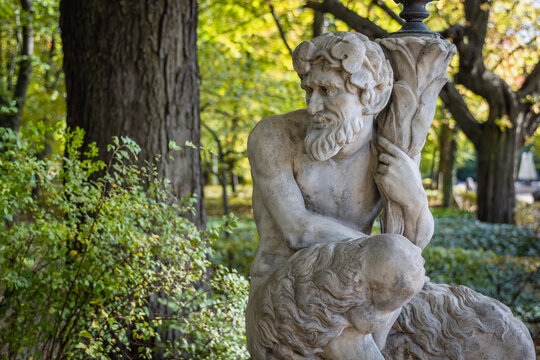 Satyr - lamp sculpture in Lazienki - Royal Baths Park in Warsaw, capital city of Poland