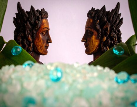 AI-Generated Fantasy Portrait, Satyr-Inspired Sculpture with Aquamarine Crystals