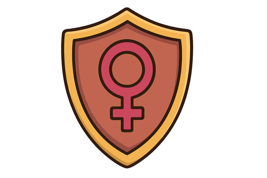 Feminism concept vector icon. Women's rights and empowerment symbol. Female gender sign on a shield. Protection, safety, and equality for women. Girl power illustration.