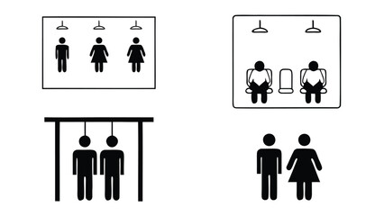 Modern restroom and dressing room signs with gender neutral symbols