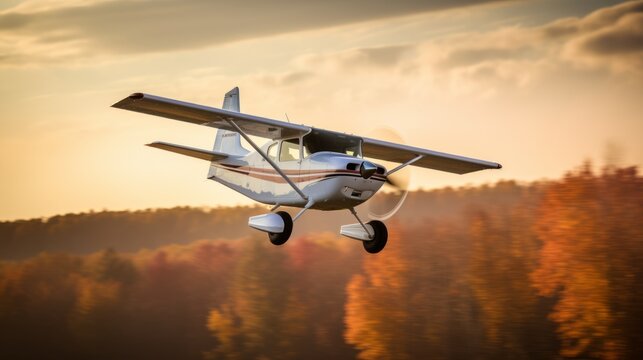 An airplane, a Cessna 172, flying over the water near Knarland Island with a harbor and sailboats