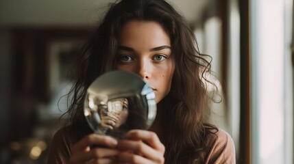 Portrait of a young woman with flawless skin and piercing eyes exuding beauty and grace. Generated AI