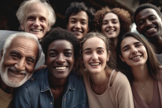 Group of multigenerational people hugging each others - Support, multiracial and diversity concept - Main focus on senior african woman face