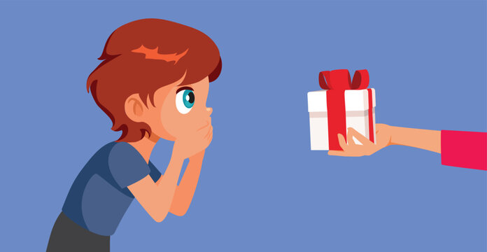 Surprised Boy Receiving a Gift Vector Cartoon illustration. Funny kid reacting to an unexpected present for good behavior