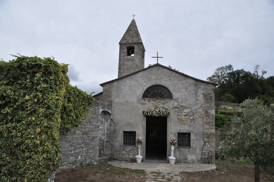 old Romanic church in Ruta, Camogli, Genova province, Liguria, Italy